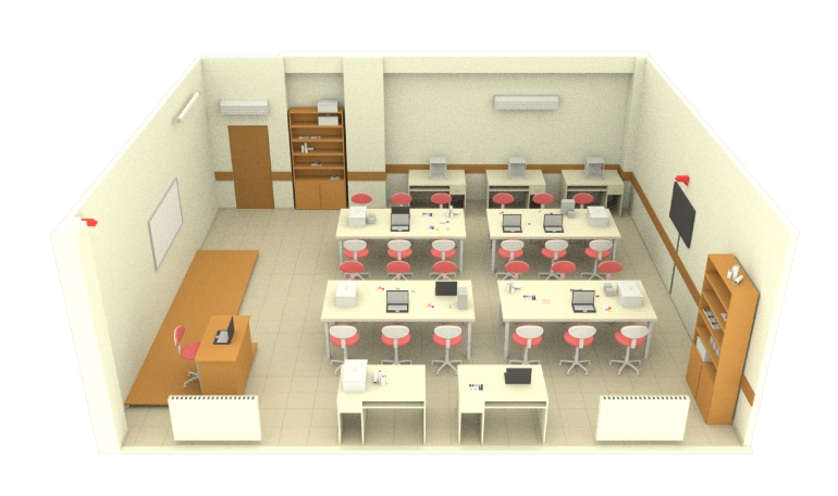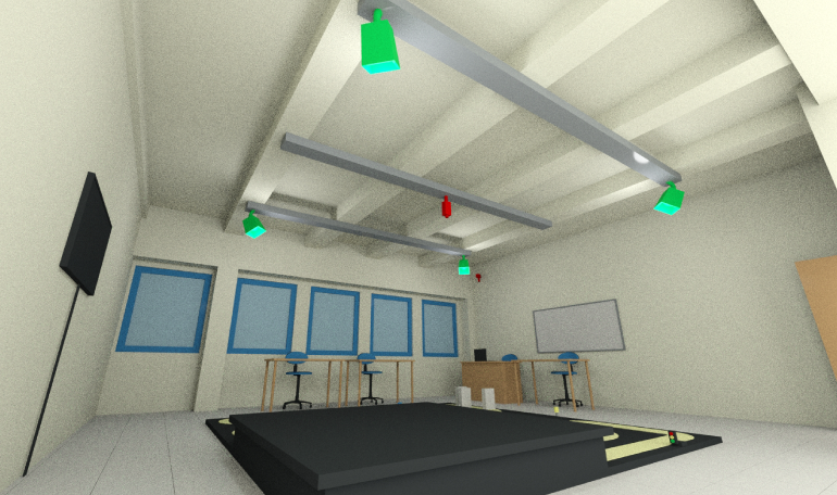 ROBOTIS AutoRace Autonomous Mobile Robot Driving Track layout for Kahramanmaraş STE(A)M Laboratory was visualised in 3D by taking into account the actual dimensions of the laboratory.